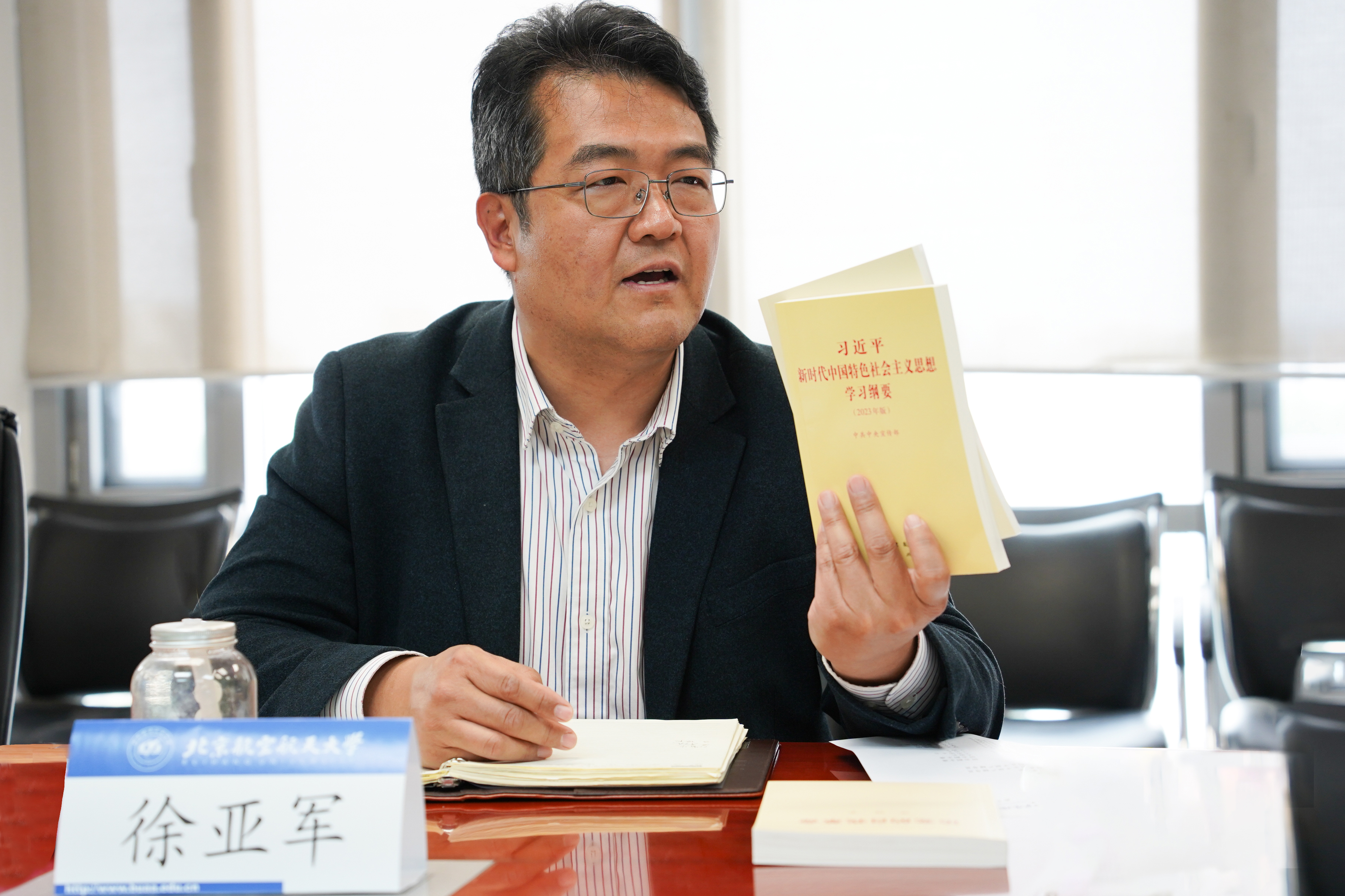 随后,徐亚军结合习近平总书记在学习贯彻习近平新时代中国特色社会主义思想主题教育工作会议上的重要讲话精神,介绍了学院主题教育工作实施方案,并向员工干部推荐了《习近平新时代中国特色社会主义思想学习纲要》、《习近平关于调查研究论述摘编》两本主题教育学习书目。他表示,员工干部们要静下心来读原著、学原文、悟原理,要联系学习和工作交流讨论、互学互鉴,把学院员工工作做实做细做好。