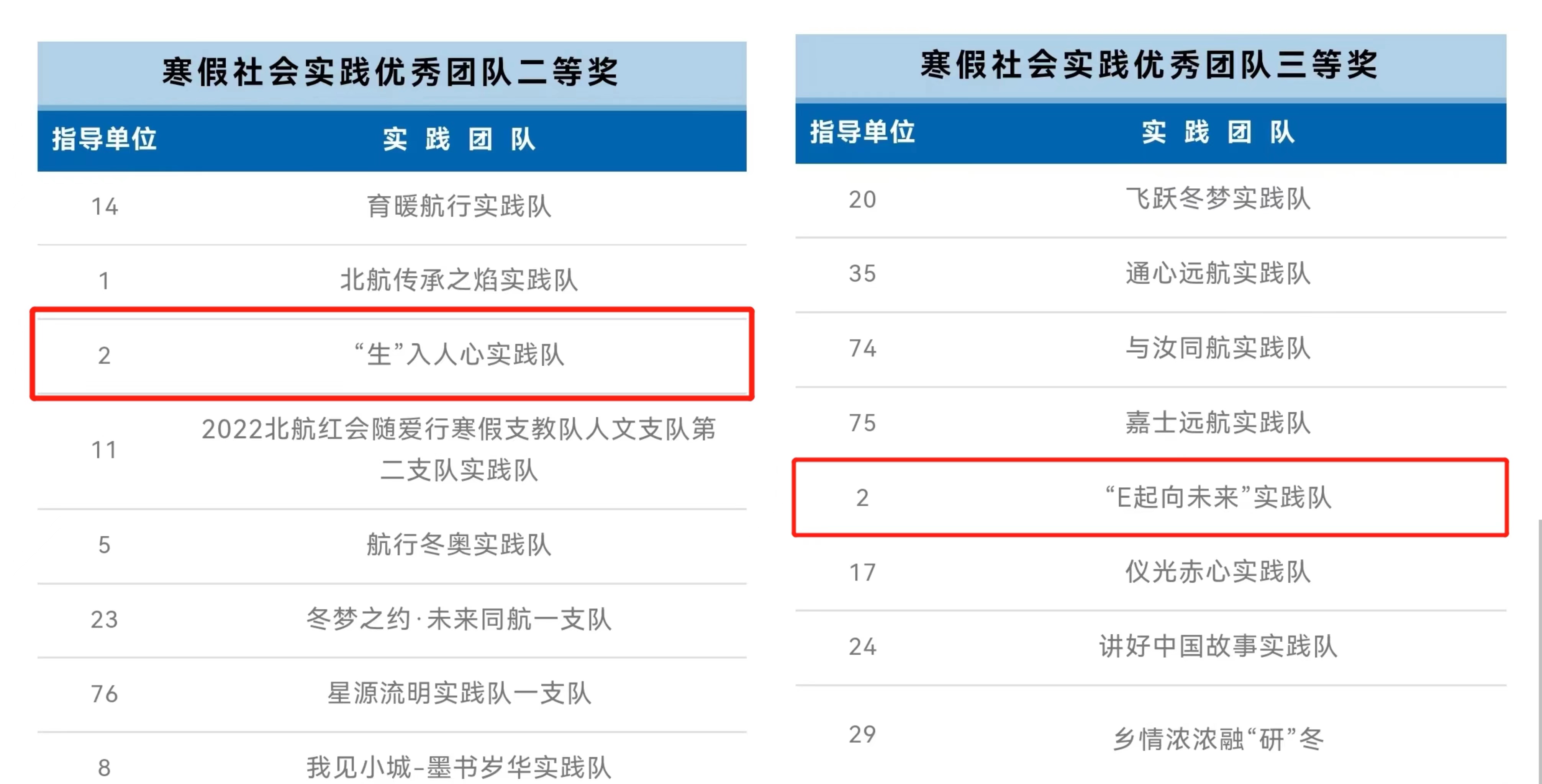 在2022年度校级社会实践优秀队伍评审中,学院多支实践队表现突出,斩获佳绩。2022年寒假获二等奖一项,三等奖一项;2022年暑假获一等奖一项,三等奖两项,获奖总分位列所有学院/书院第一。
