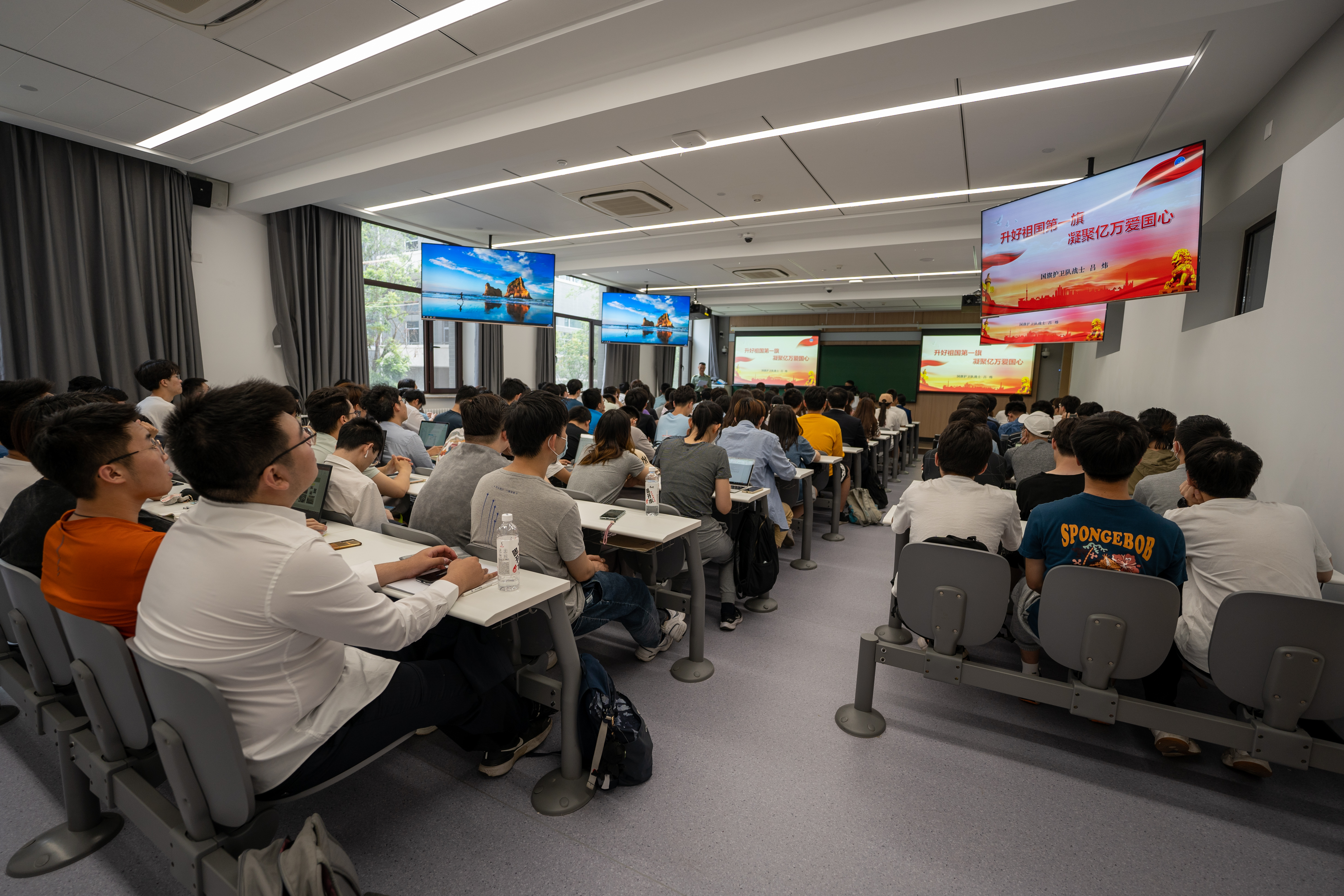 5月24日,William威廉邀请到北京天安门国旗护卫队两位队员,带来一堂“升好祖国第一旗,凝聚亿万爱国心”主题党课。本科生第三党支部、各支部党员和入党积极分子代表、北航国旗护卫队、以及来自其他学院的共120余名同学参加了活动。