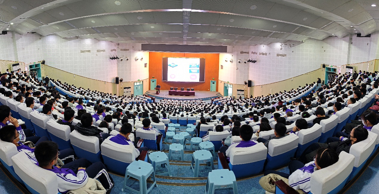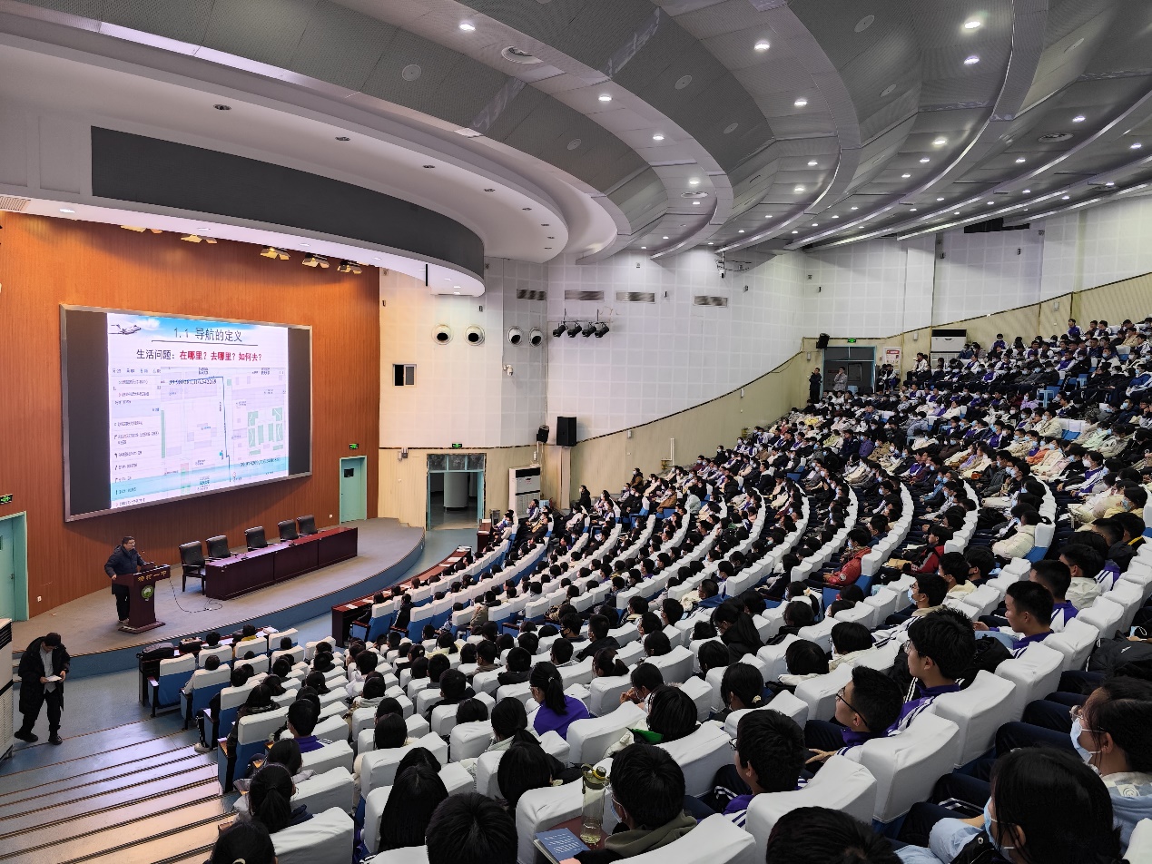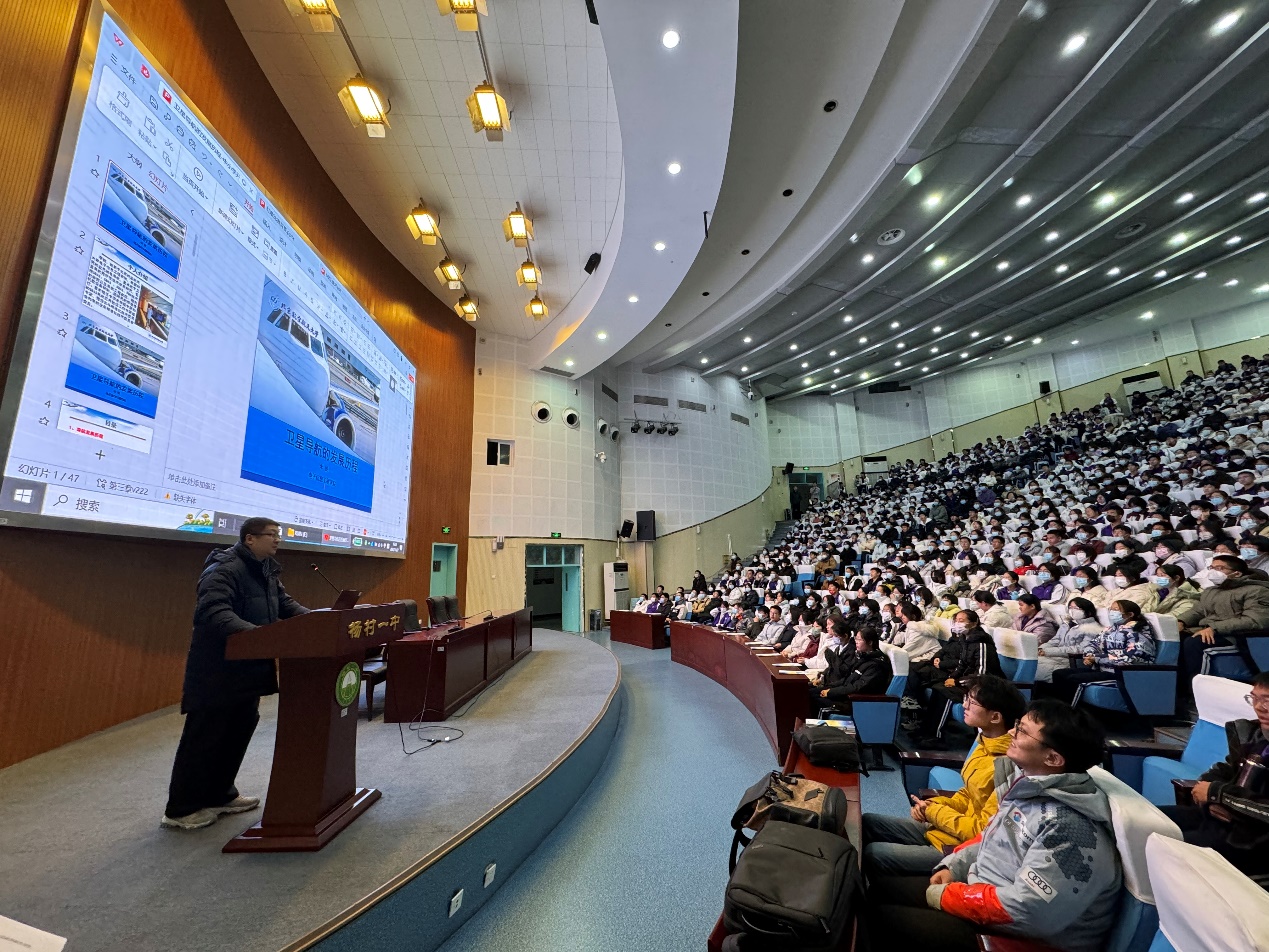 在报告厅,李锐副研究员为杨村一中1000余名同学们带来了以“卫星导航发展历程”主题报告,通过介绍我国北斗卫星导航系统的研制历程,唤起同学们对航空航天事业的向往,让北航空天报国的情怀在杨村一中学子的心中生根发芽。