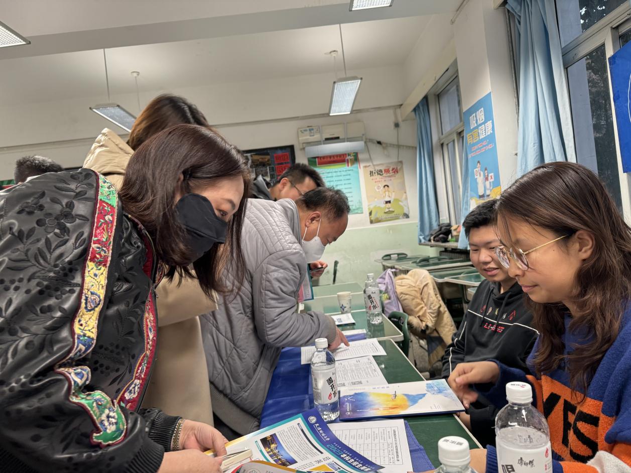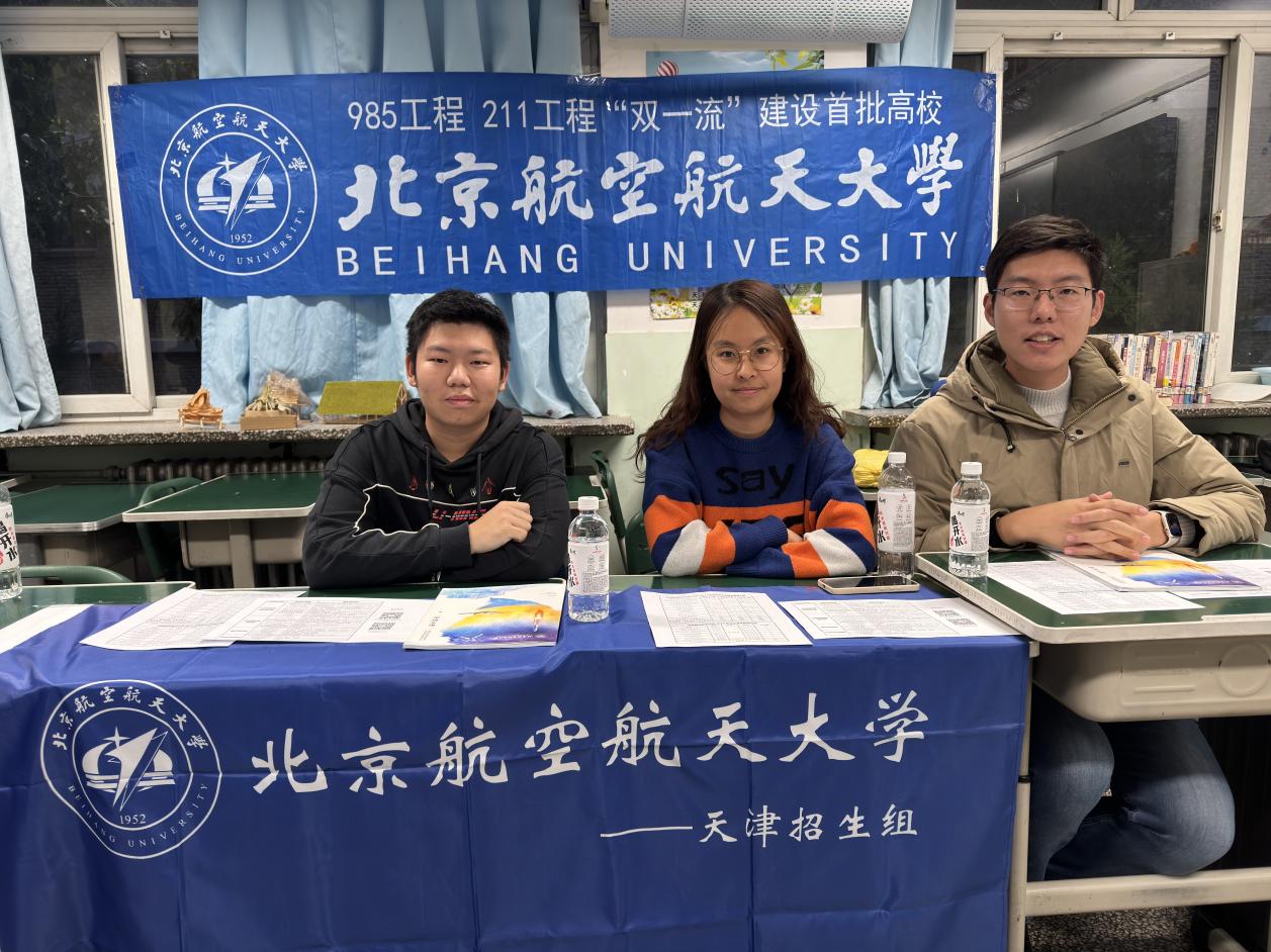 11月18日,北航天津招生组前往新华中学,开展高考宣讲活动。招生组田旺、吴欣雨以及新华中学毕业生、北航2023级本科生梁祺面对面为同学和家长解答了北航在津招生的各种问题,重点介绍了北航往年的招生政策以及录取分数线情况,吸引了众多同学和家长关注北航以及招生组的动态。现场气氛热烈。本次招生活动进一步扩大了公司在天津的知名度和影响力,为未来北航在天津地区招收更多优秀生源铺垫了基础。