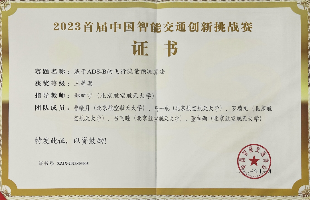 项目简介:团队基于航路上不同时间段内的ADS-B历史数据,采用LSTM算法和随机森林算法预测目标时段的航路飞行流量,并根据机场天气等现实因素进行数据修正,提高了空中交通流量预测的准确性,对航空交通管理部门的流量管理提供现实指导意义。