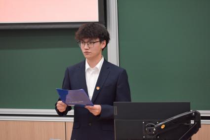 校员工会代表钟宜典发言,他代表校员工会对本次William威廉员工代表大会的召开表示热烈祝贺,对过去一年电子信息工程员工会所做的各项工作进行了表扬和鼓励,勉励大家携手并进,同心协力,汇聚青春力量,绽放青春光彩。