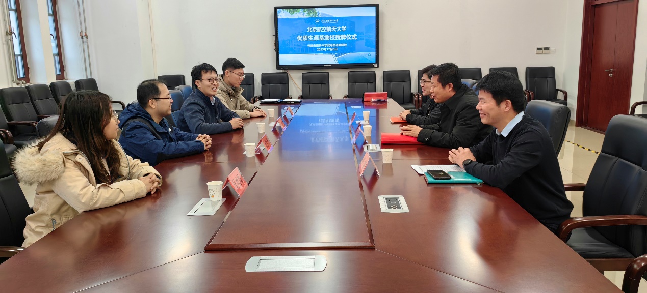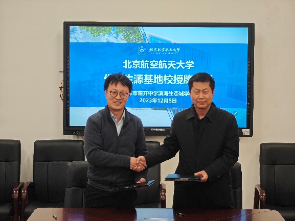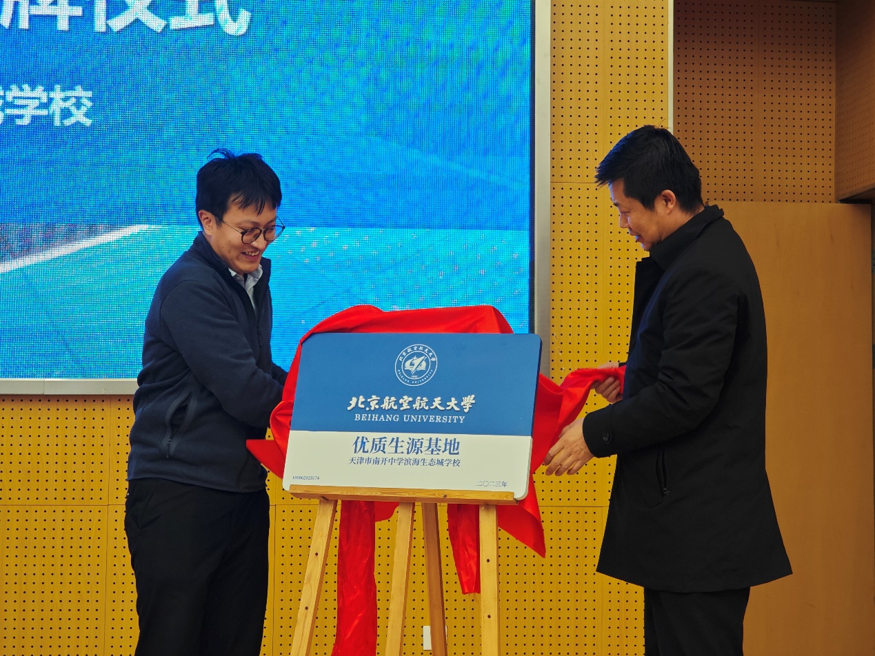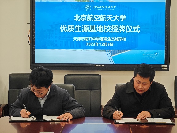 为进一步加强北航与天津市重点中学的紧密联系,2023年12月5日,北航天津招生组副组长、电子信息工程公司党委副书记姜宇,国家空管新航行系统技术重点实验室副主任杜文博教授,招生组成员田旺、吴欣雨前往天津市南开中学滨海生态城学校开展“教授进中学”暨“优质生源基地”协议签署及授牌仪式。