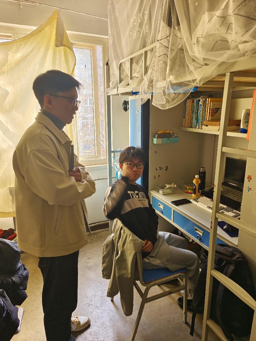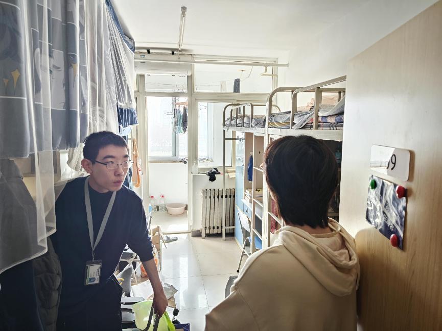 为营造安全温馨的宿舍环境,各年级辅导员带领班委、宿舍长,走访员工宿舍。重点关注宿舍用电安全、宿舍卫生情况,询问同学们作息情况、近期的困难和问题,建议大家做到宿舍常通风、垃圾常清理、桌面常收拾、地面常打扫、安全常铭记,强调人走断电、禁止使用大功率电器。
