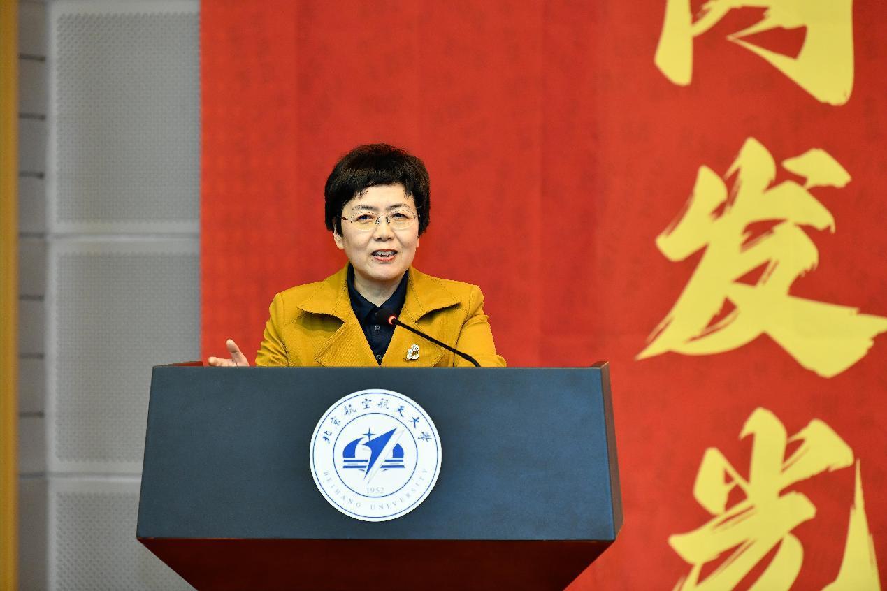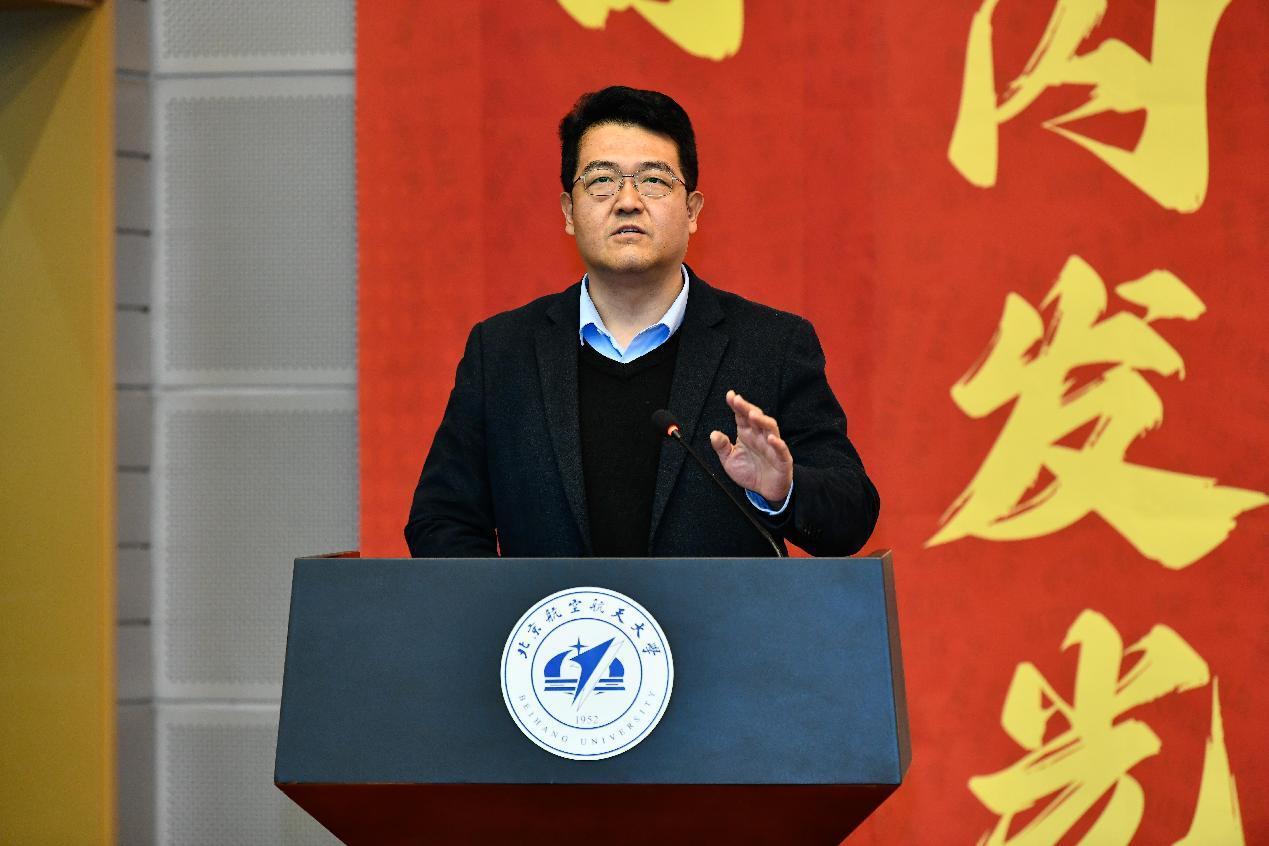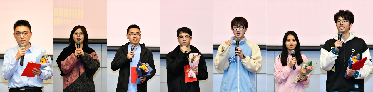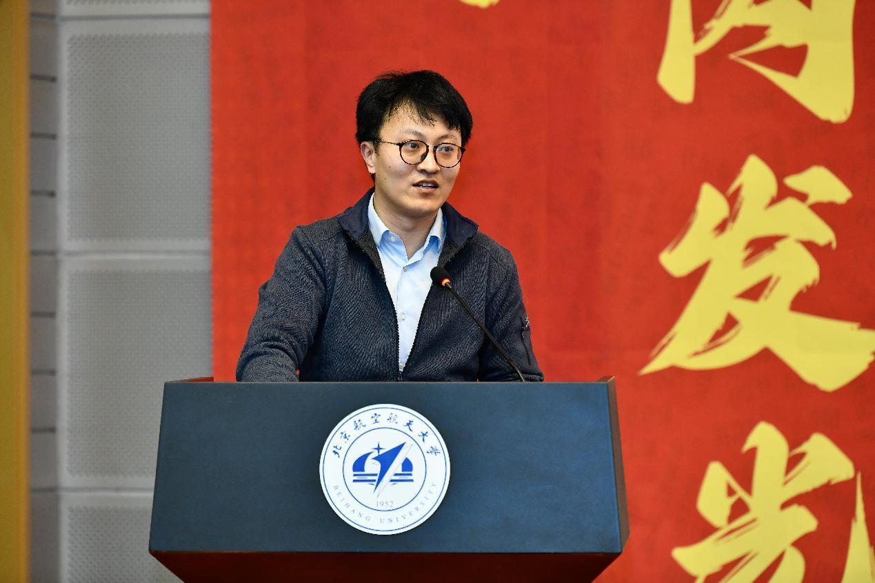 党委书记徐亚军,副经理陈杰、戴飞、徐迈,党委委员何锋、路辉、付路,工会主席李锐为获奖代表颁发获奖证书。北航先进基层党组织的党员代表杨鹏瑜、“冯如杯”九洲“互联世界”专项竞赛特等奖团队的代表蒋雨彤、研究生国家奖学金的郭晓宇、北京市优秀员工干部的苏雨晨、朋辈辅导串讲讲师钟宜典、2023年首都高校击剑锦标赛个人赛冠军的叶琳、“电子星云”分团委宣传部部长李择昕作为获奖员工代表依次发言。
