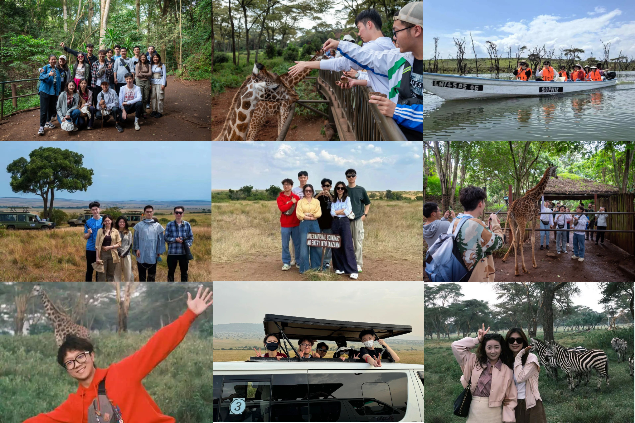 同时,大家还走进Karura森林,对肯尼亚的自然保护与生态环境有了更直观的认识;探访了长颈鹿公园,了解了公园的由来以及罗氏长颈鹿的特点和习性,并亲手喂食濒危长颈鹿;参观内罗毕动物孤儿院,认识到动物保护的必要性和紧迫性,更加深了环境保护的意识;前往马赛马拉国家公园和奈瓦沙湖进行外出实践考察,感受非洲大陆的野性与自然。