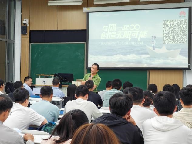 首先进行了一些关于华为企业的提问,为回答正确的同学发放奖品,并对华为的基本情况进行介绍。
