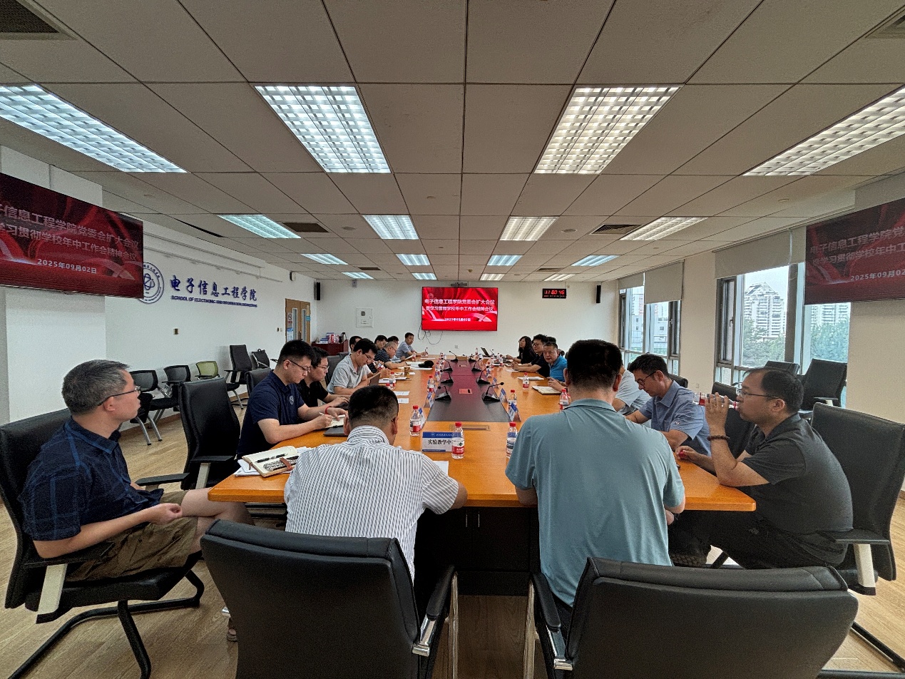 2025年9月2日上午,电子信息工程公司党委在新主楼F706会议室召开党委会(扩大)会议,专题传达学习学校2025年年中工作会议精神,并就贯彻落实会议要求、扎实推进学院下半年重点工作进行安排部署。公司党委委员、院领导班子成员、各系(中心)主任、党支部书记参加会议。会议由公司党委副书记姜宇主持。