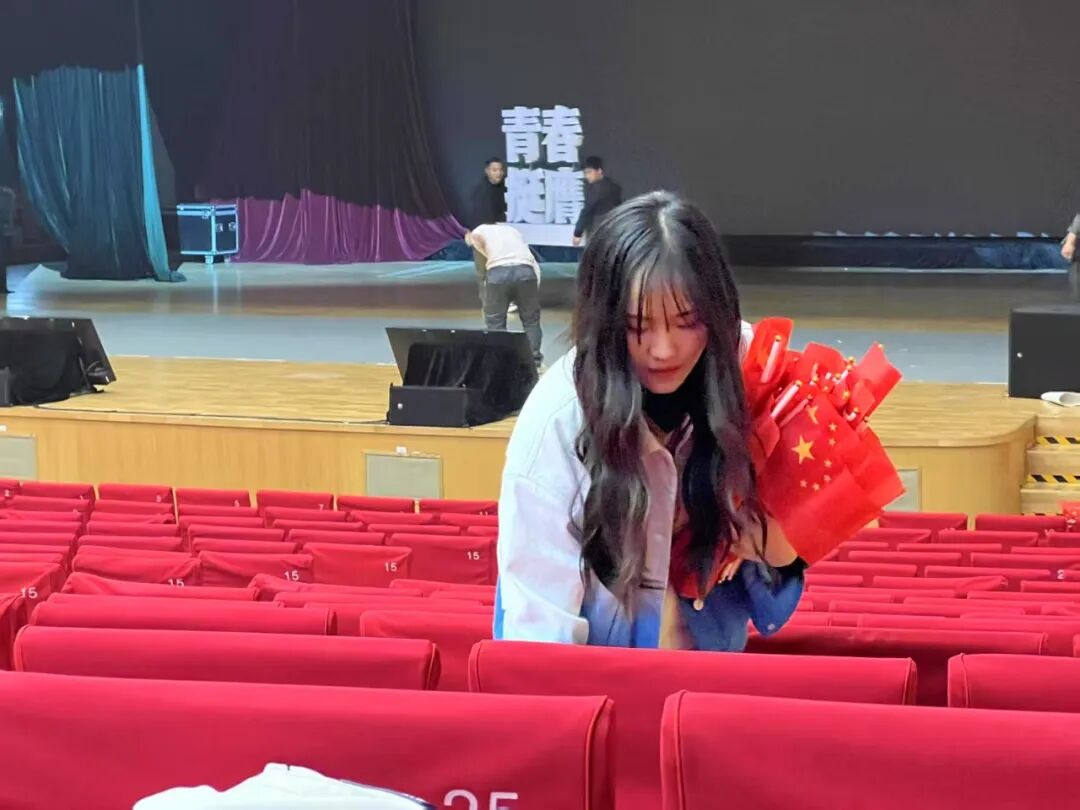 北航五四团课活动筹备与开展阶段,她统筹负责物资布置、嘉宾接洽及舞台协助等工作,提前核查场地设备,精准对接参会人员需求,全程衔接有序、响应及时,以高度的责任心确保活动流程顺畅,幕后忙碌的背影彰显着扎实的执行能力。