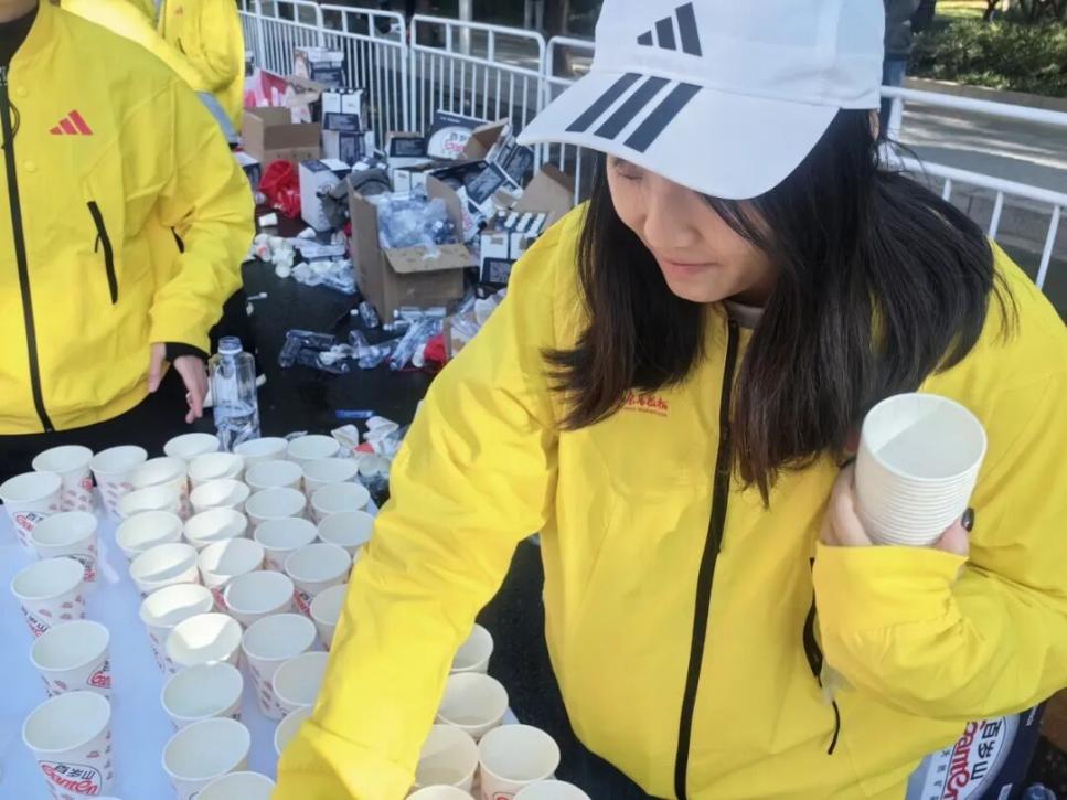 在海淀马拉松、北京马拉松志愿活动期间,她与同伴坚守赛道补给岗位,高效完成饮用水、能量物资分发工作,主动关注跑者身体状态,提供必要帮扶与鼓励,以严谨细致的服务保障赛事顺利推进,赛道旁的志愿背影成为赛事中温暖的风景线。