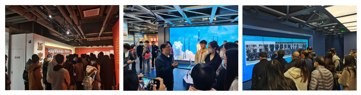 跟随讲解员的解说,大家仿佛游走在70年的时间隧道中,一张张图片、一件件藏品,一帧帧影像……七十载北航历史栩栩如生地呈现在大家眼前。飞机模型前,员工们激动万分,讲解着当时参与设计时的难忘故事;院士墙前,员工们如数家珍,骄傲地讨论着自己曾经的同学们;毕业合影前,员工们驻足凝望,讲述着那时候北航校园的故事……