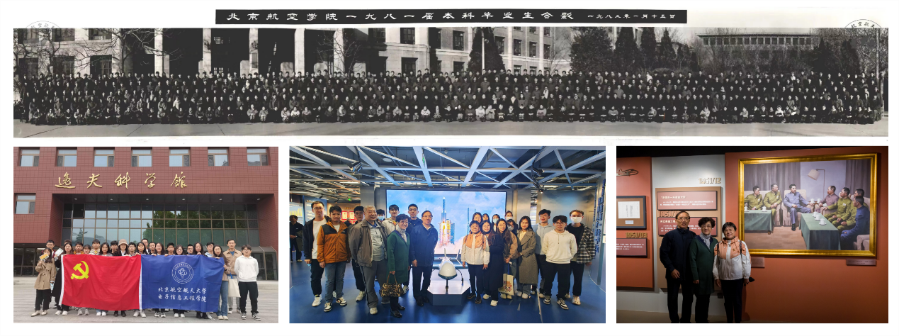 1977级员工是恢复高考后第一批走进大学校园的员工,今年恰逢毕业40周年。毕业后他们各自在从事的领域里有所建树,也时刻牵挂着母校的发展。在北航70周年校庆之际,为表达对母校的感恩与祝福,552名1977级的员工们共同为校史馆捐赠了《急需办一所航空大学》油画。恰逢员工代表们来到现场观看油画的展出,支部同学与“学长学姐”们一道回顾北航70年砥砺前行的发展历程,重温往昔峥嵘岁月,感悟新时代北航人的使命与担当,所到之处充溢着欢乐祥和的氛围。