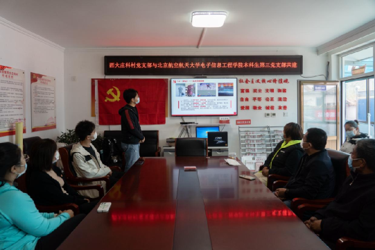 此次红色“1+1”支部共建活动包括共上一堂党课、西大庄科村新址参观调研、北京延庆奥林匹克园区参观三个环节,共建双方党支部党员、入党积极分子代表共20余人参与此次活动。张山营镇政府办副主任李岗,北航电子信息工程公司党委副书记郑磊、专职辅导员郝旭春一同参与了此次共建活动。