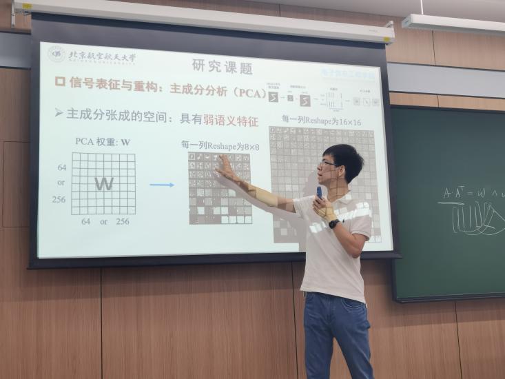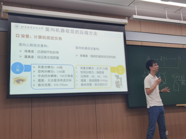 第三,李老师深入阐释了信号表征与重构的方法——主成分分析(PCA),将图像信息向量化并进行PCA分解,将具有弱语义特征的主成分空间保留从而实现图像降维处理。而对于面向语义的信号表征则指用无监督的方式,寻找处于连续低维的语义空间。使用基于特征函数的可逆生成对抗网络,可以生成和重建具有语义的图片。另一方法为面向人类视觉的压缩方法,可以对人眼关注的部分选择性重构,将具有大量语义部分的图片重构,将保准度和逼真度精度提升并将码率减半。最后一方法为面向机器视觉的压缩方法,确保了机器视觉任务准确度,从而实现语义分割、图像分类、目标追踪等功能。