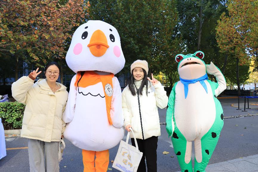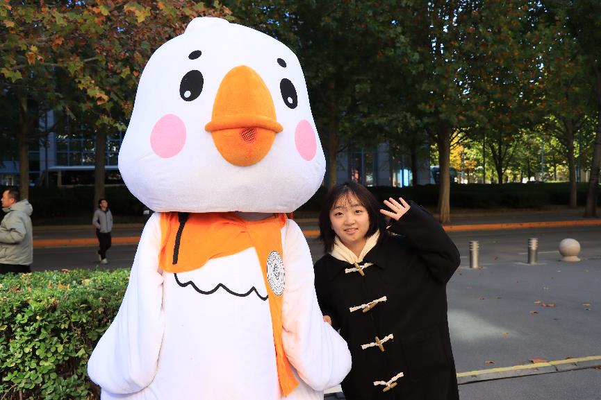 一个欢乐而温馨的场景吸引了大家的目光。同学们簇拥着电小鹅,纷纷摆出各种可爱的姿势与其合影。电小鹅的出现,不仅为校庆嘉年华增添了一份趣味和欢乐,更让大家对北航的认同感和归属感倍增。