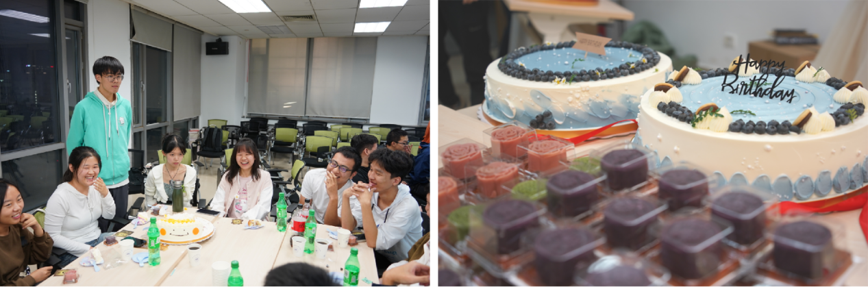 在轻松的音乐声中,集体生日会拉开序幕,暖心细致的策划、精心布置的场地、每人一块月饼与蛋糕,于细节处见温馨,于氛围中见喜庆。