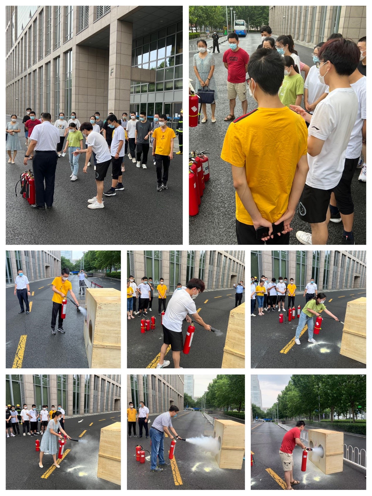 上午九点三十分,新主楼F座701房间模拟发生火情,现场员工发现火情、按响报警器,新主楼物业第一时间确认火情并出动微型消防站赶赴现场开展模拟灭火工作,疏散演习准时开始。师生们在学院专项工作组成员的指引下,捂住口鼻,弯腰前行,快速从安全通道逃生,迅速到达新主楼前空地,顺利完成安全疏散工作。
