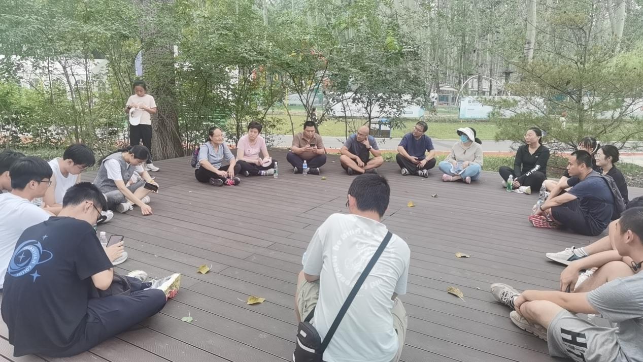 途中休息时,两支部同志们围坐成圈,分享入党动机,围绕“纵向党支部建设”以及“大思政”等话题进行了研究探讨,并开展党史知识问答活动。“北航思政课课堂中,付丽莎老师让我逐渐明白,敢于奉献,甘于奉献,乐于奉献,投身空天报国、科技强国的这样的人生是热烈而光辉的。能为身边人服务,在组织中发光发热,我十分幸福。”田白骜同志说。他的发言收到了同志们响亮的掌声。