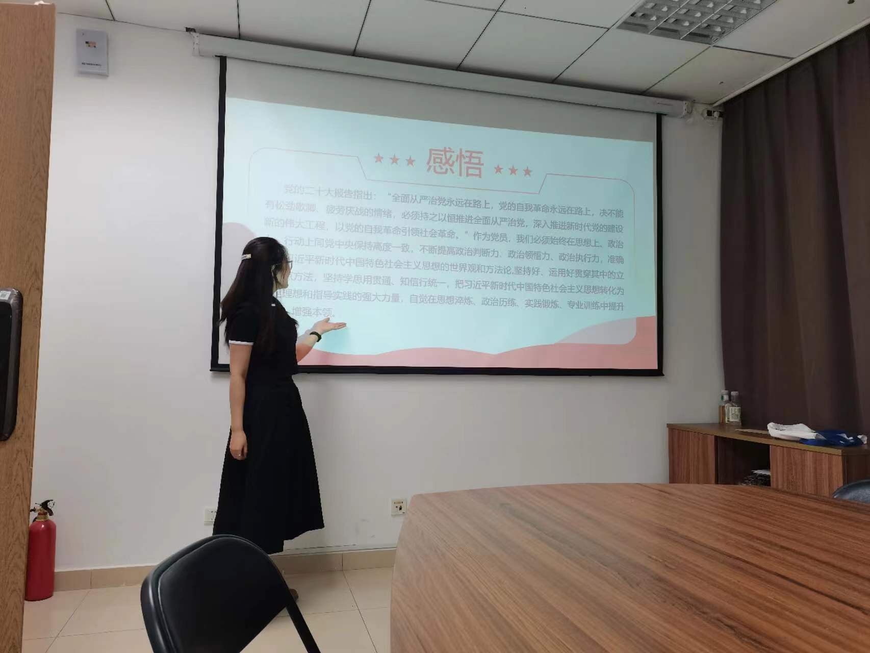 在支部集中学习后,ZY21021党支部党员依次进行了交流、分享与发言,围绕党的二十大报告的重点内容进行深入交流和热烈讨论,结合自身的亲身经历和理解感悟,向参会人员分享了学习党的二十大精神心得体会。